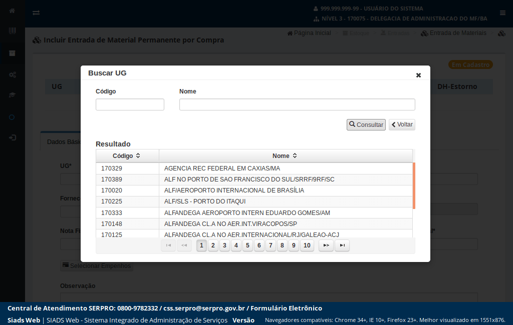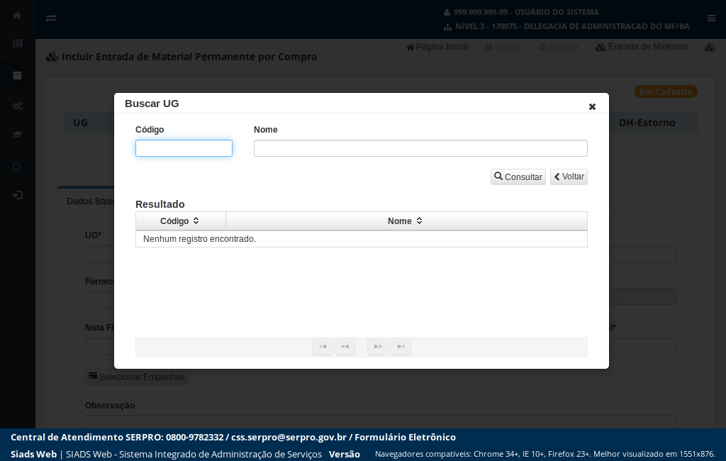 Esses foram os passos para a entrada de material permanente de compra no SIADS Web.
